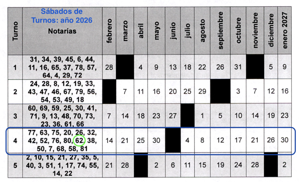 La Notaría 62 del círculo de Bogotá prestará sus servicios de Lunes y Viernes de 8:30 am – 4:45 pm, de Martes a Jueves de 8:15 am – 4:45 pm y sábados de turnos*.